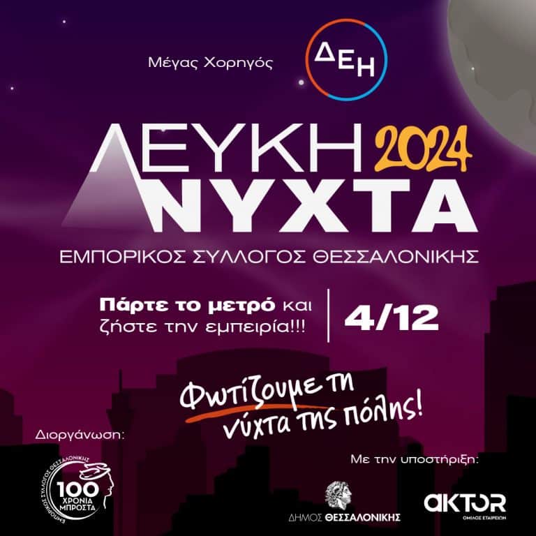 Η ΛΕΥΚΗ ΝΥΧΤΑ ΤΗΣ ΘΕΣΣΑΛΟΝΙΚΗΣ ΑΛΛΑΖΕΙ ΗΜΕΡΟΜΗΝΙΑ Τετάρτη 4 Δεκεμβρίου 2024 Ανοιχτά καταστήματα έως τις 12 το βράδυ! Οι