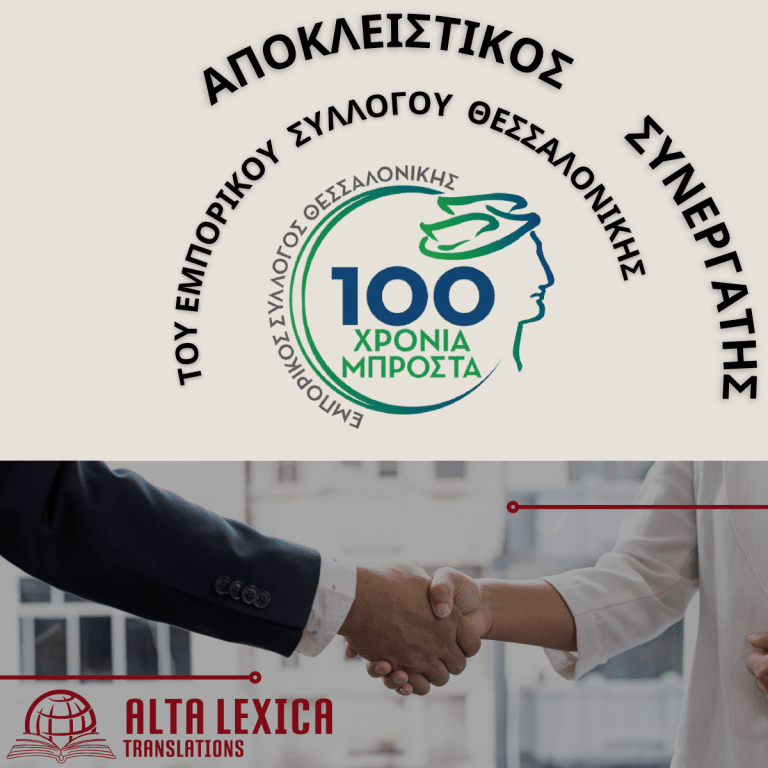 Αποκλειστική συνεργασία του Εμπορικού Συλλόγου Θεσσαλονίκης με το μεταφραστικό γραφείο Ο Εμπορικός Σύλλογος Θεσσαλονίκης ανακοινώνει την συνεργασία του με το